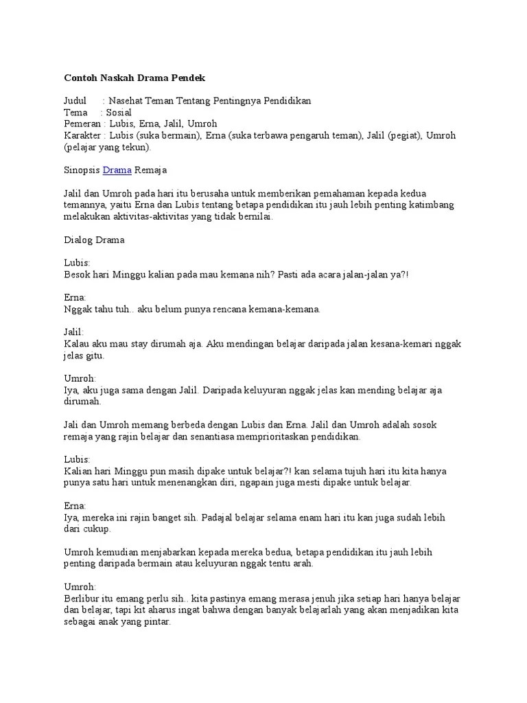 Contoh Sinopsis Drama Pendek : Naskah Drama Pendek Simdig Kls X Pdf / Menulis teks drama panjang maupun pendek mungkin bukan pekerjaan mudah bagi seseorang yang belum memiliki pengalaman menyusun naskah drama.. Contoh naskah drama persahabatan yang menarik dalam pendidikan di sekolah,. Menulis teks drama panjang maupun pendek mungkin bukan pekerjaan mudah bagi seseorang yang belum memiliki pengalaman menyusun naskah drama. Contoh naskah drama ini beserta sinopsis. Mari kita mulai dengan definisinya dulu ya. Contoh teks drama singkat persahabatan bahasa jawa yang lucu .